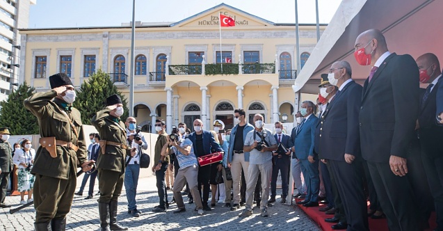Cumhuriyet Meydanı’ndaki programın ardından İzmir Valiliği önündeki törene geçildi. Burada da 98 yıl önce ilk birliklerin İzmir’e girişi canlandırıldı. İzmir Valiliği'nde Türk bayrağının göndere çekildiği anlar, herkesi yeniden duygulandırdı. Ardından birlik komutanı İzmir Valisi Yavuz Selim Köşger'e Türk bayrağı verdi. İzmir Büyükşehir Belediye Başkanı Tunç Soyer de birlik komutanına plaket verdi. Türkiye Emekli Subaylar Derneği Genel Başkanı Namık Kemal Çalışkan da Anıtkabir Komutanlığı'ndan aldığı bayrağı Vali Köşger'e verdi. Soyer'e de şehitliklerden alınan topraklar verildi. Tören, bu görüntülerle sona erdi.