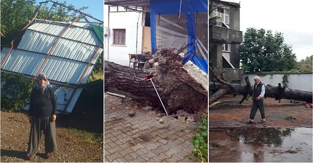 Hortum çıktı, bazı ağaçlar evlerin üzerine devrildi. Ekili alanlar ve zeytin ağaçları büyük hasar gördü.