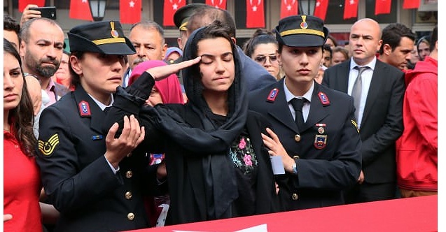Bir kız çocuk babası Jandarma Astsubay Kıdemli Üstçavuş Mesut Akmeşe için memleketi Dikili ilçesindeki Merkez Camisi’nde askeri cenaze töreni düzenlendi. Cenazede duygu dolu anlar yaşandı. Şehidin 8 yaşındaki kızı Hayriye Nil’in babasının tabutuna son bakışları yürek dağladı. Şehidin bir yakını da al bayrağa sarılı tabutunu dakikalarca okşadı. Şehit babası Kerim Akmeşe ve ailesininde, cenazede ayakta durmakta güçlük çekti.