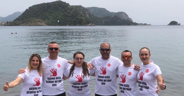 “Gücün ve cesaretin var ise, Kadına Değil Kendine Meydan Oku” Sloganıyla kendi alanlarında önemli başarılara imza atan ve görev yaptıkları şirketlerin üst düzey yöneticiliklerinde bulunan 3'ü erkek 6 kişilik ekip, kadına yönelik şiddete dikkat çekmek için 1’er saat arayla 24 saat boyunca Çeşme Marina’dan Seferihisar Marina’ya kadar yüzecek. Daha önce Türkiye ile Yunan adaları arasında, Manş Denizi ve Cebelitarık Boğazı'nda yüzen ekip üyeleri, 24 Ağustos’ta 80 km uzunluğundaki parkuru geçecekler. "Kadına değil, Kendine Meydan Oku" sloganıyla yüzecek olan ekibin başlarındaki bonelerde ise şiddet gören kadınların isimleri yazacak.