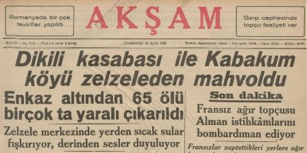 Dikili'de 7,1 şiddetinde deprem oldu. 1000'e yakın ev yıkıldı, yaklaşık 65 kişi öldü, 100 kişi yaralandı. Depremden sonra yerin altından sıcak sular fışkırdı ve Dikili Bergama arasında yarıklar oluştu.