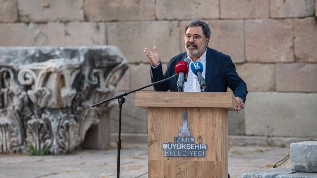 Yazar Ahmet Ümit’in, Zeus Altarı ve Pergamon Tapınağı’nın gölgesinde polisiyeyi arkeolojiyle harmanlayan son kitabı “Kayıp Tanrılar Ülkesi”nin lansmanı İzmir Pergamon Antik Kenti’nde yapıldı.