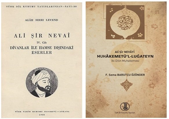 - Nevai AŞ (Ç: F. Sema Barutçu Özünder). Muhakemetü-l Lugateyn (İki Dilin Karşılaştırılası). Türk Dil Kurumu, Ankara, 2011;X+244+XVI (Topkapı Sürümü).