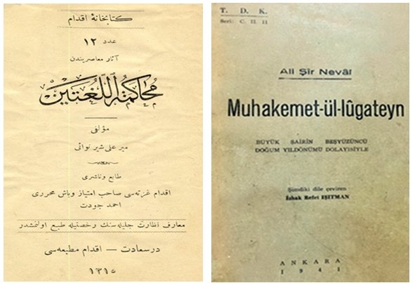 Bu değerlerden birisi de Ali Şir Nevai’nin (9 Şubat 1441-3 Ocak 1501) (Fotoğraf 1) 1499 yılında Herat’da yazmış olduğu, güncel olarak “İki Dilin Karşılaştırılması” anlamına gelen Muhakemetü’l Lugateyn (Fotoğraf 2) olup, Türkçe Lehçelerini (Diyalektleri) de içeren bir çeşit “Türkçe-Farsça Sözlük” olduğu söylenebilir.