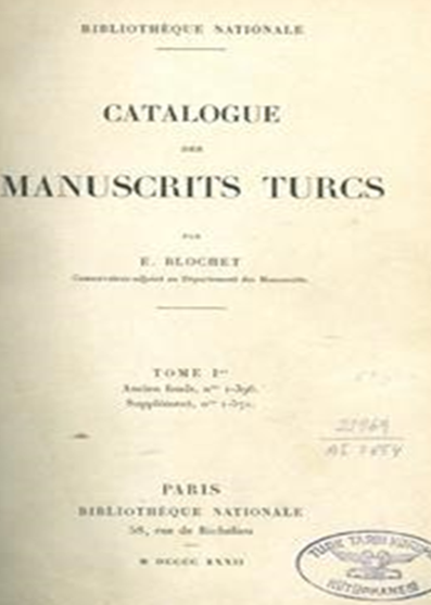 3) Blochet E. Türkçe Yazma Eserler Kataloğu. 2. Cilt. Fransız Ulusal Kütüphanesi, Yazmalar Böl, Paris, 1. C, 1932;402 +VIII, 2.C, 1933;314.