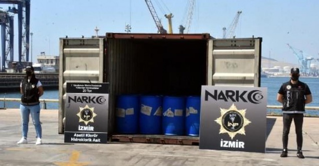 İzmir'in Aliağa ilçesindeki Limanda, Polisin düzenlediği operasyonda, Çin'den gelen bir konteynerde, uyuşturucu imalatında kullanılan 26 ton 160 kilogram kimyasal ele geçirildi.
