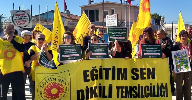 Öğretmenlik Meslek Kanunu (ÖMK) başta olmak üzere; ekonomik talepler ile öğretmenlik mesleğinin itibarsızlaştırılmasına karşı bir araya gelen öğretmenler ülke çapında iş bıraktı. İş bırakma kararına Dikili Eğitim-Sen Şube Temsilciliğinden de destek geldi.