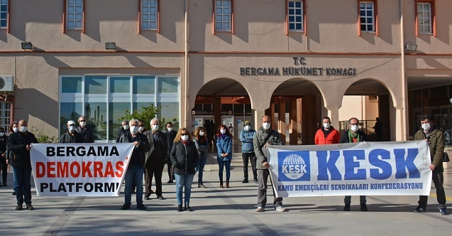 Eğitim-Sen Bergama Temsilcisi Şirin Ural tarafından Cumhuriyet Meydanı'nda, belediye önünde okunan açıklamada ise; “Bergama Belediye Başkanı'nın göreve geldiği ilk günden itibaren sürdürmekte olduğu emekçi düşmanı politikalarına bir yenisi daha eklendi. Daha önce sendikal faaliyetleri nedeniyle Fen İşleri Müdürlüğüne sürgün edilen arkadaşımız TÜM-BEL –SEN İzmir Şubesi yöneticisi ve işyeri temsilcisi Arkeolog Bülent Türkmen'in, dün işyerinde 25 Kasım Kadına Karşı Şiddetle Mücadele Günü nedeniyle dağıtmakta olduğu sendikasına ait bildiriler İnsan Kaynakları Müdürü Şerif Topal’ın müdahalesi ile zorla elinden alınmış ve arkadaşımızın sendikal faaliyetleri zor kullanarak engellenmiştir. Bu engelleme sırasında Şerif Topal maskesiz olduğundan aynı zamanda arkadaşımızın sağlığını da tehlikeye atmıştır”