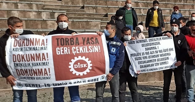 Açıklamada; “Bu torba yasa ile işverenlere vergi ve pirim teşvikleri artmakta, kayıt dışı işçi çalıştıran işverenler dahi ödüllendirilmekte, işçilerin kıdem tazminatları ve emeklilik hakları parça parça ortadan kaldırılmaktadır. Kıdem tazminatı ve emeklilik hakkı bize çocuklarımızın emanetidir ve çocuklarımızın bu hakkını savunmak tüm işçi sınıfının görevidir. İktidarı bir kez daha uyarıyoruz: Çocuklarımızın emanetinin ve geleceğimizin gasp edilmesine sessiz kalmayacağız!” denildi.