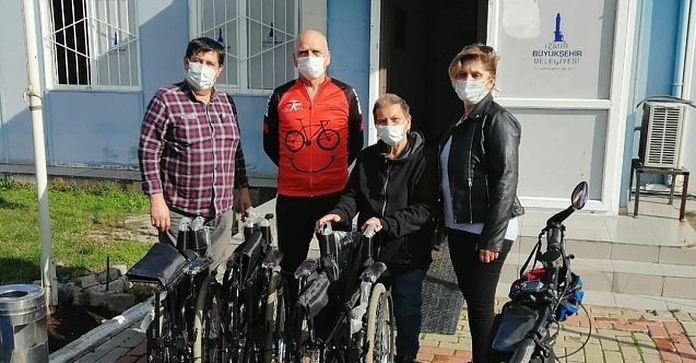 Bergama Aktif Bisikletçiler Grubu “Bisikletçiler ile Engelsiz Yaşam” projesi kapsamında edindikleri tekerlekli sandalyeleri, Bergama Engelliler Derneği’ne teslim ettiler.