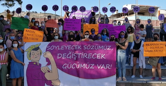 Açıklamada ayrıca; “Ülkemizde 2019 yılında 422, 2020 yılında 409 ve 2021 yılında sadece bugüne kadar 176 kadın katledildi. Yine ülkemizde yalnızca haberlere yansıyan kadarıyla 15 yaşından büyük yaklaşık her 3 kadından 1’i yaşamının herhangi bir döneminde fiziksel ve cinsel şiddetin birine ya da her ikisine maruz kalıyor. Sadece kadınlar değil elbette şiddete maruz kalan, aile içi şiddetin odağındaki çocuklar ve toplumun görmezden gelmeyi seçtiği LGBTİ+ lar da bu artan şiddetin mağdurları. İşte biz, bu mağduriyetlerin önlenmesi, gerekli tedbirlerin alınması, haksızlıkların önüne geçilmesi, yani kısaca İstanbul Sözleşmesi’nden ayrılma karanının geri çekilmesi için bugün burada hep birlikte ses veriyoruz, sessizliğe itiraz ediyoruz, direnmekte inat ediyoruz”