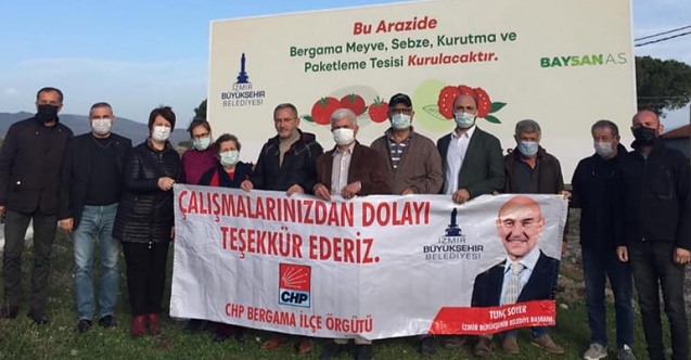 CHP Bergama İlçe Başkanlığı, Kadıköy Mahallesi'nde, İzmir Büyükşehir Belediyesi tarafından “Bergama Meyve, Sebze, Kurutma ve Paketleme Tesisi” kurulması planlandığını belirterek Başkan Tunç Soyer'e teşekkür etti.