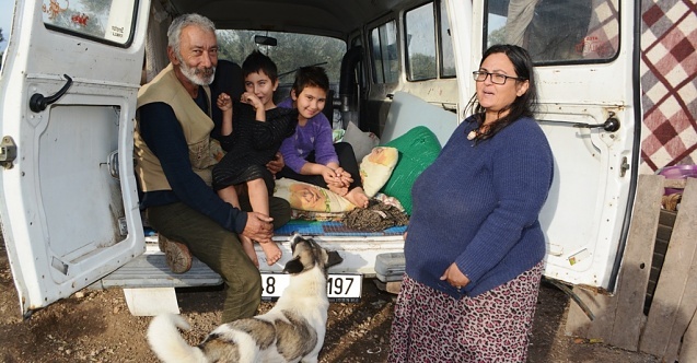 Bu amaçla da karavanlarını da sattıklarını aktaran Küçük, bu yaşam biçiminin kendi tercihleri olduğunu da kaydederek, “Biz bu hayatı bu şekilde yaşamak istedik. Eşim 11 yıldan bu yana benim bu hayatıma dâhil oldu. Ondan öncesinde de bir o kadar yıl benim doğa ile içe içe süren bir yaşantım var. Biz yaptığımız el sanatlarını satıp, elde ettiğimiz gelirlerin bir kısmını kış mevsiminde de bir kamp kurarak, kış mevsimini o kampta geçirmek suretiyle böyle bir yaşam tercihiyle bu günlere geldik. Bizim şu anda yetkililerden ya da yardımseverlerden somut anlamda herhangi bir talebimiz yok. Bize 6 ay önce buraya gelip çiftliklerinde kalabileceklerini söyleyen mekân sahibi ise kısa bir süre hayatına giren sevgilisinin bizi çiftlikte istememesi nedeniyle adeta kapı önüne koydu. Bir dostum kullanmadığı hurda minibüsü bize gönderdi. Şimdi minibüsün içinde hep birlikte yaşıyor ve hurda minibüse kurduğumuz teneke soba ile ısınmaya çalışıyoruz. Acilen hayatımızı sürdürebileceğimiz ve bir konteyner ya da tek göz odalı bir barınağa ihtiyacımız var. Biz ailecek, kentsel bir yaşamdan yana değil, biraz daha kırsal da yaşam sürmek istiyoruz.” ifadelerini kullandı.