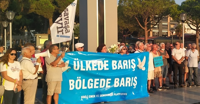 Daha sonra Dikili Emek ve Demokrasi Platformu’ndan Zülfali Aras, Yannis Ritsos’un ‘Barış’ adlı şiirini okudu. Uğur Özcan ve Berna Taşdelen tarafından okunan açıklamada ise; “İnsanlık tarihinin gördüğü en kanlı savaşlardan biri olan İkinci Dünya Savaşı’nın başladığı gündür 1 Eylül. Bu gün, bütün dünya halkları savaşlara karşı barışı, düşmanlıklara karşı kardeşliği haykırır” denildi.