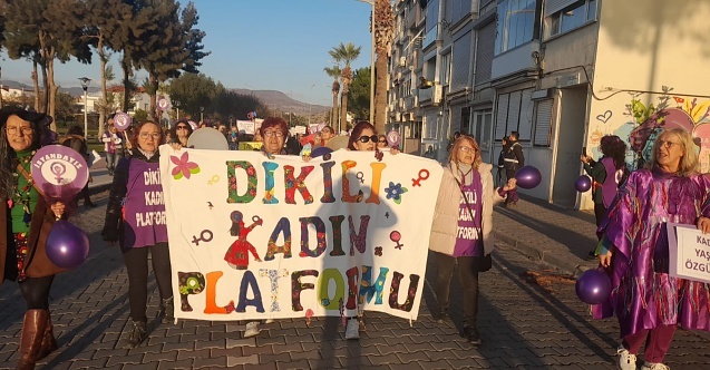 Dikili’de kadınlar, 25 Kasım Kadına Yönelik Şiddete Karşı Uluslararası Mücadele ve Dayanışma Günü'nde meydanlara indiler.
