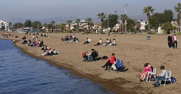 Dikili'de yaşayan vatandaşlar güneşli havayı görünce dışarıya çıkarak park ve kumsalları doldurdu.