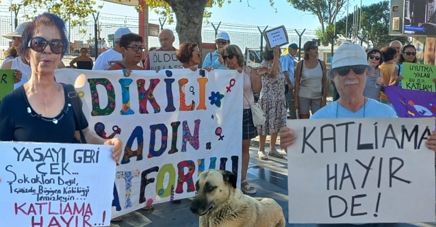 Dikili Emek ve Demokrasi Platformu bileşenlerinin de desteklediği eylemde “Sen susarsan ben ölürüm, susma!”, “Öldürme, kısırlaştır, yaşat”, “Katliama hayır de”, “Dostlarımızın öldürülmesine izin vermeyeceğiz”, “Uyutma yalan bu bir katliam” ve “Sokak hayvanları sahipsiz değildir” yazılı dövizler açıldı.