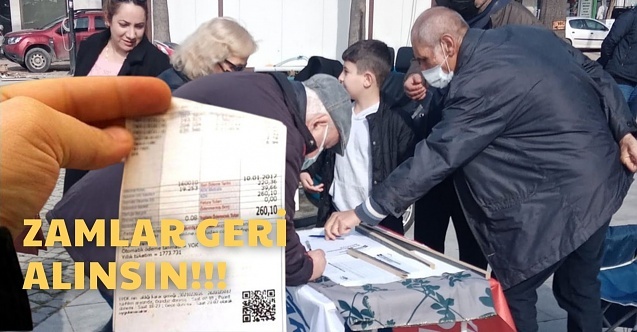 Yüksek elektrik faturaları Dikili'de protesto edildi, zamların geri çekilmesi için imza kampanyası başlatıldı.