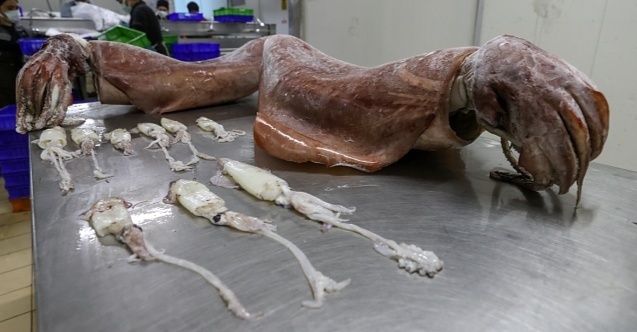 Egeli balıkçılar, İzmir'in Karaburun ilçesi açıklarında yaklaşık 1 metre boyunda ve 16 kilogram ağırlığında 2 kalamar yakaladı.