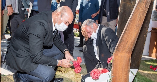 Bir dakikalık saygı duruşunun ardından katılımcılara seslenen Başkan Tunç Soyer, 6 yıl önce bugün sendikalar, sivil toplum örgütleri ve meslek odalarının çağrısı ile düzenlenen Emek, Barış ve Demokrasi Mitingi'ne yönelik saldırıda katledilen 103 yurttaşı anarak “Ankara Garı önünde, Türkiye’nin her yerinden gelen on binlerin barışı haykırdığı esnada, ardı ardına yapılan canlı bomba saldırıları bu sesi boğmak, susturmak istemişti. Bu sebeple 10 Ekim, ülkemizi dipsiz bir felakete sürükleme girişimi ve insanlığa karşı işlenmiş vahşet olarak belleğimize kazındı. Göreve geldiğim yılın 10 Ekim’inde, barış ve kardeşliğin şehri İzmir’imizde bir 10 Ekim Anıtı yapma sözünü vermiştim” dedi.