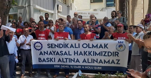 DİSK Genel-İş Sendikası İzmir 4 No’lu Şube Başkanı Aydın Tekin, Bergama Belediye yönetiminin, işçilerin hakkı olan 17 aylık farkını ödememek için toplu iş sözleşmesi için masaya oturmadığını ve işçilerin haklarını gasp ettiğini söyledi.