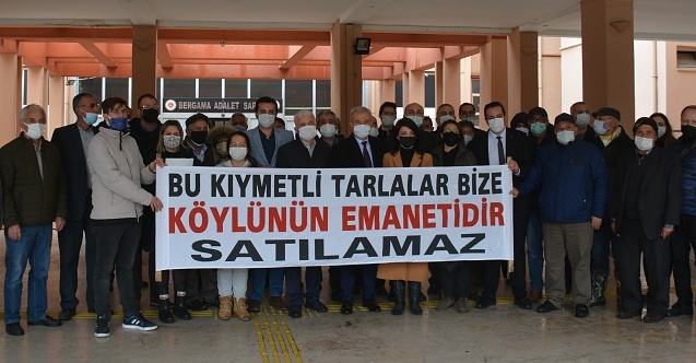 CHP İzmir İl Başkan Yardımcısı Şener Akdemir; “Satışı istenen arazilerin üzerinde çiftçilik yapan aileler var. Örneğin bu arazilerden büyük bir bölümünün bulunduğu sadece Kadıköy’de çiftçilik yapan 20 aile var. 20 aile bu toprakları işliyor, burada üretim yapıyor, buradan ekmek yiyor. Bergama Belediyesi bu arazileri satarsa 20 aile ekmeksiz kalacak. Bu aileler traktörünü satacak, kentlere göç etmek zorunda kalacak. Bu bir nevi köylülüğü, çiftçiliği bitirme projesidir. Bu yüzden üstünlerin hukukunu değil, hukukun üstünlüğünü savunan çiftçiler, köylüler, adalet savunucuları ve avukatlarımız burada” dedi.