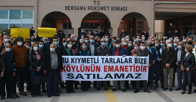 Bergama Hükümet Konağı önünde toplanan yöre köylüsüne ve muhtarlara, Bergama Demokrasi Platformu’nun yanı sıra CHP ve İYİ Parti İlçe Teşkilatları da destek verdi. Konuyla ilgili basın açıklaması okundu, grup tarafından “Bu kıymetli tarlalar bize köylünün emanetidir, satılamaz” yazılı pankart ile “Ata toprağımızı sattırmayız”, “Bergama köylüsü ayakta”, “Kamunun malı kamuda kalsın” ve “Fil aç doymaz” dövizleri açıldı.