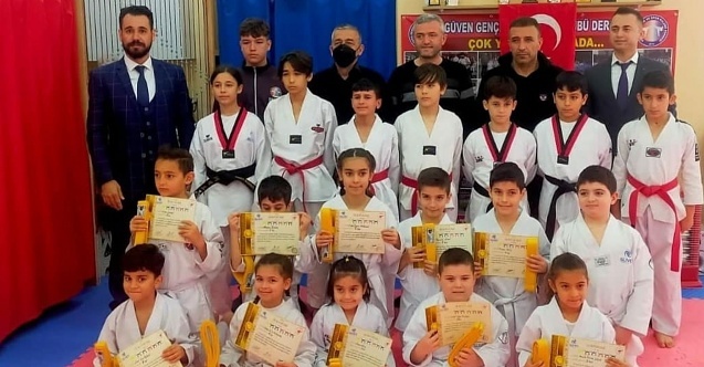 Sertifika töreninde konuşan antrenör Burçin Güven; “2022 yılı birinci grup kuşak terfi sınavımıza katılıp bizleri onurlandıran sporcu velilerimize ve sınav komisyon üyelerine sonsuz teşekkür ederim. Çocuklarımızın sağlıklı koşullarda spor yapabilmesi için elimizden gelen her şeyi yapıyoruz. Sertifika alarak bir üst kuşağa geçen sporcularımızı tebrik ediyorum” dedi.