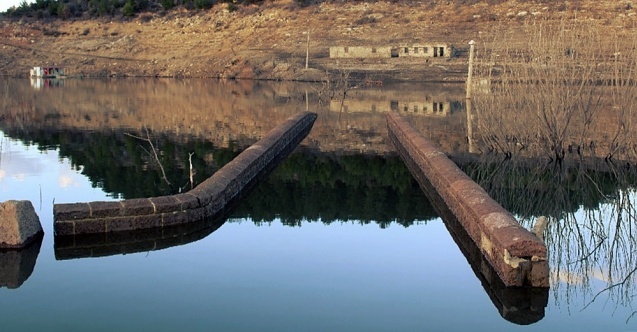 Bergama'da yer alan Yortanlı Barajı'ndaki sular, kuraklık nedeniyle azalınca 2 bin yıllık tarihi Paşa Ilıcası Köprüsü gün yüzüne çıktı.
