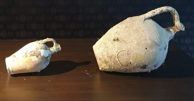 Ekiplerin yaptığı aramalarda, yaklaşık 30 ve 60 cm uzunluklarında tek kulpu olan testiye benzer 2 adet içi boş obje ele ele geçirildi.