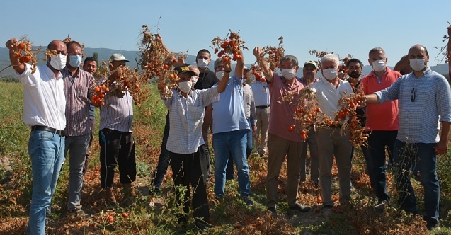 Basın açıklaması öncesi domates üreticileri adına konuşan ve domateslerini tarladan toplamama kararı aldıklarını belirten Dündarlı Muhtarı Ahmet Kanat; “Domates geçen hafta neredeyse 30 kuruştu. Bunun 15 kuruşu toplama maliyeti, geri kalan 15 kuruşu da çiftçiye kalacaktı. Ben şimdiye kadar bu tarlaya 40 bin liraya yakın masraf ettim. Maliyete bakınca işin içinden çıkamadım. Bu sebeple toplamama kararı aldım. Şöyle bir durum var; bugün markete gidiyorsunuz ve size 25 kuruşa poşet satıyorlar, ancak bizim bir kilo domatesimiz bir tane poşet almıyor. İki ton domates sattığımızda bir tane çeyrek altın alamaz hale geldik. Çiftçiyi bu duruma düşürmek kimsenin hakkı da değil, haddi de değil” dedi.
