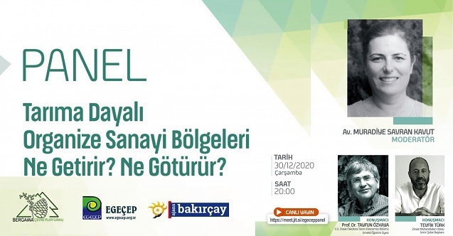 Moderatörlüğü'nü Avukat Muradiye Savran Kavut'un yapacağı panelin konuşmacıları E.Ü Ziraat Fakültesi Tarım Ekonomisi Bölümü Emekli Öğretim Üyesi Prof.Dr.Tayfun Özkaya ve Ziraat Mühendisleri Odası İzmir Şube Başkanı Tevfik Türk olacak..