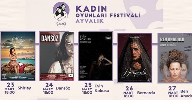 Ankara Sanat Tiyatrosu’nun sanat yönetmenliğinde ve Atölye Kültür Sanat organizasyonu ile Türkiye’nin ilk ve tek kadın temalı Kadın Oyunları Festivali, 17-27 Mart tarihleri arasında Ayvalık Belediyesi’nin ev sahipliğinde Vural Sineması Nejat Uygur Sahnesi’nde gerçekleştirilecek.