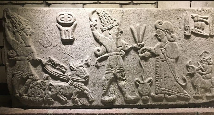 Libasyon: Tanrıya içki ve kurban adama sahnesi. Aslantepe Malatya M.Ö. (Hititler 1200-700) Ortostaden. Pek çok kentte şehir duvarları, o günlerin özel olaylarını, kralların hayatlarını anlatan duvar kabartmalarıyla süslenmiştir. Kral, kutsal testiden, yerdeki kaba (Libasyon) kutsal içkiyi sunu yapıyor. Karşısında ise Fırtına tanrısı Teşup yer alıyor. Müzenin orta avlusunda bulunan Şehir duvar kabartmaları için ilerde ayrı bir yazı yazmayı düşündüğümden bu kez sadece bir seri değerlendirmeye aldım.