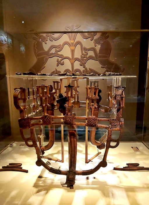 8. Frig Ahşap Masası: Gordion’daki tumülüste bulunan mezar içinde pek çok eser ortaya çıkarılmıştır. Mezarda 13 çömlek, 2 kepçe ve 155 kâse bulunmuştur. Mezarın Midas’a değil babası Gordias’a ait olduğu ve bu mezarı yaptıranın Midas tarafından yaptırılmış olduğu arkeologlarca söyleniyor. Yassıhöyük’ün 250 metre çapında 80 metre yüksekliğindeymiş. Amerikalılar yukardan aşağıya doğru delme işlemi gerçekleştirmişler ama Zonguldak’tan gelen madencilerle alt kısımdan 80 metre uzunluğunda bir tünelle giriş yaparak mezara ulaşmışlar. O muhteşem ahşap masa bulunmuş. Hiç çivi kullanılmadan yapılmış, masanın üzerindeki işçilik beni hayrete düşürüyor. Görülmeye değer eserlerden. Bazı yazılarda bu masanın Midas’a ait olduğu söyleniyor. Oysaki arkeologlar bu mezarı Midas’ın babası için yaptırmış olduğu ve onun değerli eşyalarını yanına koyduğu söyleniyor. Demem o ki bu masa, Midas’a ait değil bilakis Kral Gordias’a ait olmalıdır.
