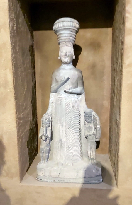 6. Emziren kadın heykeli: Horoztepe M.Ö.3 binden tunç bir heykelcik. Çocuğunun sol göğsünden emziren kadın sağ eliyle de evladının bacağını tutmuş. Aynı camekân içinde bir ikinci kadın tunç heykeli olduğu için her ikisini birlikte çekmek için yan taraftan görüntüledim.