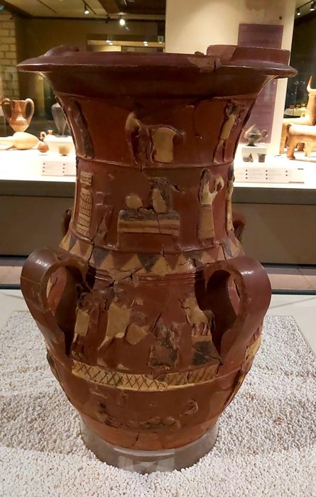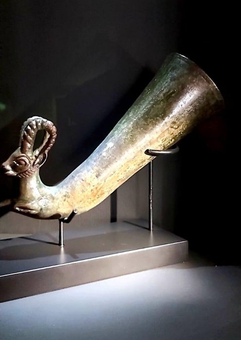 Onlardan birincisi bir Riton: Ritonlar genelde hayvan başlı su destileri, küpler olarak adlandırıyoruz. Kutsal sıvının Tanrılara sunumunda kullanılan destidir. Ritonlar hayvan başlı ya terracota ya da tunçtan üretilmiş olabilir. Müzeyi gezerken dikkatimi çeken ve fotoğrafladığım çok özel bir 4 ördekbaşlı bir Riton gördüm. Çok güzel gözüküyordu. Daha da ötesi muhteşemdi.Bundan dolayı yazımın içine kattım.