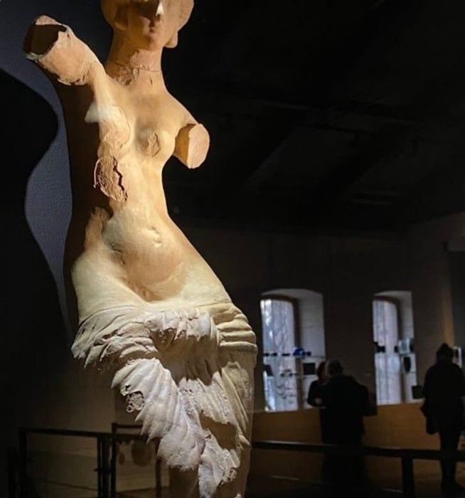 Bir camekân içinde sergilenen klasik Afrodit heykelciği idi. Yani yarı çıplak olanı. Bir başka gezimde Truva müzesinde de aynı büyüklükte bir Afrodit terrecotasını görmüştüm ama o heykeltıraş Praksiteles’e ait çırılçıplak olanıdır, hatırlatayım.
