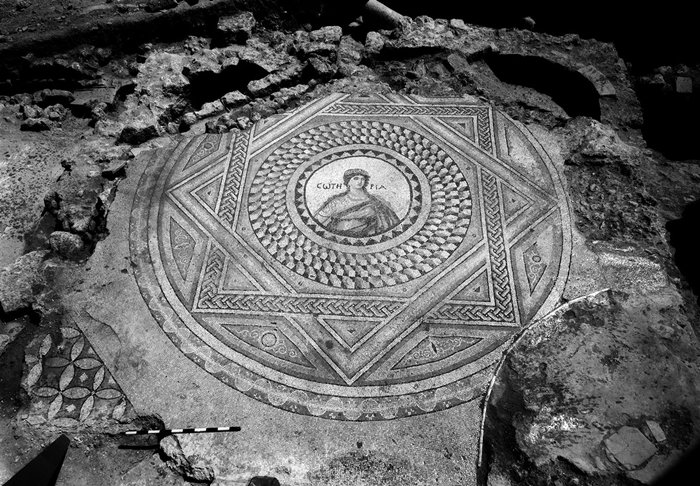 Fotoğraf 7. Apolausis Hamamı, Soteria mozaiğini gösteren kazı fotoğrafı, Antakya, 1938.