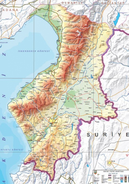 Fotoğraf 2. Hatay İli Fiziki Coğrafya haritası. https://www.harita.gov.tr/urun/hatay-fiziki-il-haritasi/398