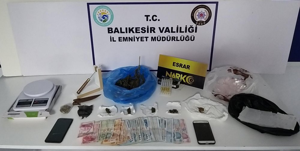 Ekiplerin; E.B isimli şahsın ev ve işyerinde yaptıkları aramalarda satışa hazır halde esrar maddeleri ele geçirildi. Aynı operasyonda diğer şahıs T.K.’nın evinde yapılan aramalarda ise uyuşturucu tartımında kullanılan bir adet hassas terazi, 80 grama yakın esrar, 20 gram kenevir tohumunun yanı sıra uyuşturucu paketlemede kullanmak amaçlı kilitli şeffaf poşetler ele geçirildi.