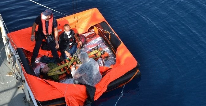Dikili’nin Bademli açıklarında bir grup düzensiz göçmen olduğu ihbarını alan Sahil Güvenlik Komutanlığı ekipleri harekete geçti. Bademli açıklarında can salı içerisinde yasa dışı yollardan Yunanistan’ın Midilli Adası’na geçmeye çalışan ancak Türk kara sularına geri itilen 1’i engelli 5 göçmen olduğu belirlendi. Yapılan kurtarma operasyonunda engeli olan kişi özel düzenekle bota çıkarıldı.