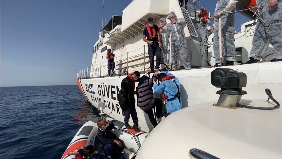 Dikili'de, Yunanistan Sahil Güvenlik Botu tarafından geçişlerine izin verilmeyerek geri itilen 13 kaçak göçmen, Türk Sahil Güvenlik Komutanlığı ekiplerince kötü hava koşullarına yakalanmadan kurtarıldı.