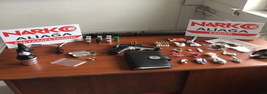 Aramalarda ise uyarıcı ve halüsinasyon özelliği olan, saldırganlık ve depresyon gibi birçok ruh sağlığı sorununa neden olan metamfetamin maddesi ile 15 adet fişeklenmiş esrar maddesi, adet tabanca ve bu tabancaya ait 7 adet fişek, 2 adet uyuşturucu satışından elde edildiği değerlendirilen bir miktar döviz ve Türk lirası ele geçirildi.