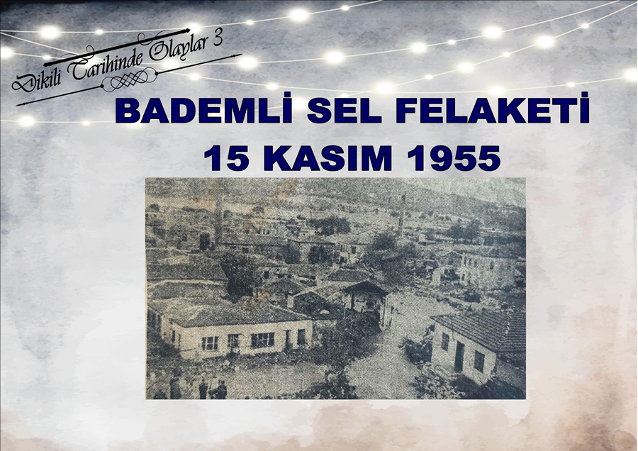 Bu kadar önemli bir yerleşim yeri olan Bademli, 1955 yılının Kasım ayında büyük bir felaketle sarsılmıştı. İzmir genelinde yaşanan yoğun yağışlar başta Menemen, Çiğli, Kemalpaşa, Gaziemir olmak üzere birçok ilçede su baskınlarına neden olmuş, tarım arazilerine büyük zararlar vermişti. 13 Kasım 1955’de başlayan ve aralıklarla şiddetini artıran yağışlar, takvimler 15 Kasım 1955’i gösterdiğinde en yoğun halini aldı. Bademli’de gece saat 01.30 sıralarında köy girişindeki köprünün yağmur suları ile gelen cisimlerle tıkanması sonucu büyük bir felaket yaşandı. Yağmur suları dere aracılığı ile denize ulaşamayınca birikmeye başladı ve Kayabekir mevkiinde taşma yaparak köyün üç noktasından sel suları yerleşim alanlarına girdi. Köy sakinleri aniden baskın şeklinde gelen sel suları karşısında evlerin damlarına, ağaçlara tırmanmak zorunda kalmıştı. Elektiriğin henüz gelmemiş olduğu Bademli’de halk gece karanlığında sel sularının hangi yönlerde geldiğini kestiremediğinden büyük bir panik yaşadı. Sel suları bugünkü cami ile sağlık ocağı arasında en şiddetli etkisini gösterdi ve o güzergâhta yaşamını yitiren vatandaşlar oldu.