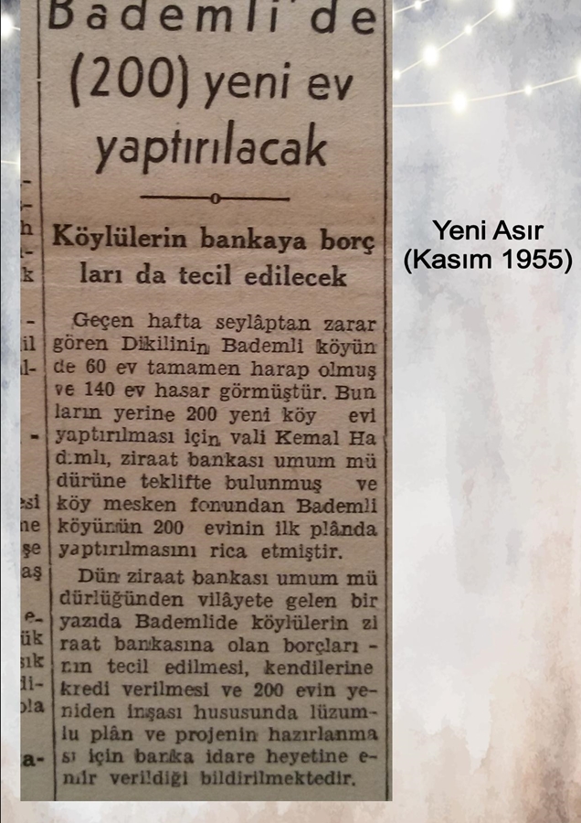 15 Kasım 1955 yılında gece saatlerinde yaşanan sel felaketi ile ilgili o güne şahitlik etmiş Bademli sakinleri ile ilgili yapılan röportajlarda olayın vehametini daha iyi kavrıyoruz.
