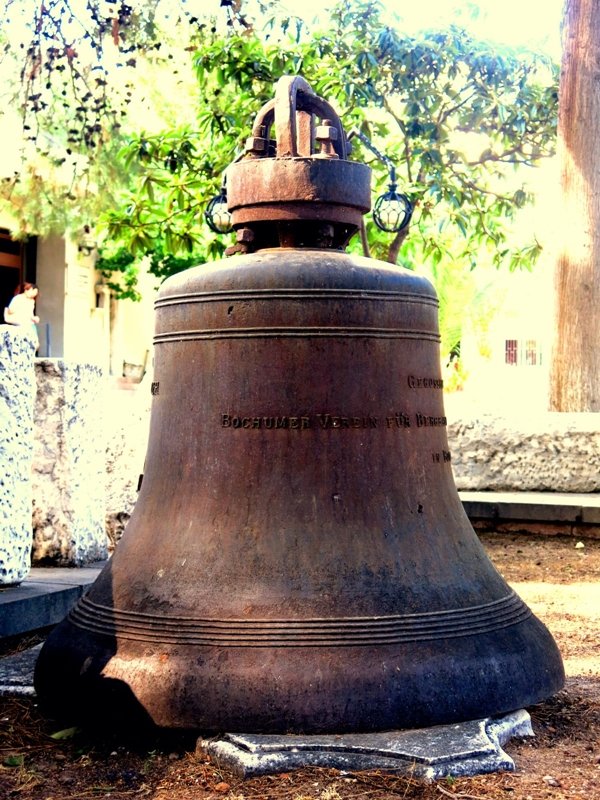 Bochum kentindeki dökümhanede üretilmiş, üzerinde “Ali– Aga-EA-Baltazzi-1863” yazmaktadır. Baltazzi ailesi o devirde Sultan Abdülmecit'in samimi dostları olup bankacılığın mimarlarıdır. 300 bin dönüme yakın Ayvalık'tan Aydın'a kadar verimli toprakları olduğu söyleniyor. Her ne kadar Baltazzi ailesi Katolik olsalar da Rumlarla sıkı işbirlikleri nedeniyle onların kilisesine bu değerli çanı hediye etmişlerdir. Çünkü ailenin yanında ve topraklarında binlerce Rum çalışmaktadır. Bu hediye ile onlarında gönüllerini alarak kendilerine karşı sorunsuz çalışmalarını sağlamışlardır.
