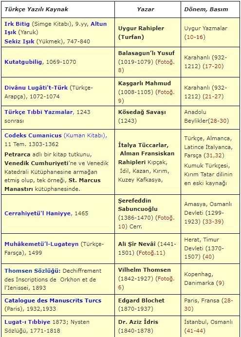 Örneğin, Tabgaç (315-376), Hun (352), Göktürk (552), Uygur (745), Karahanlı (840) ve sonraki dönemlerin, Türkçe yazılı kaynaklarının bulunması, bilim dünyasının ve genelde Avrupalı bilim insanlarının uzun erimli ve çok yönlü çalışmaları ile olmuştur.