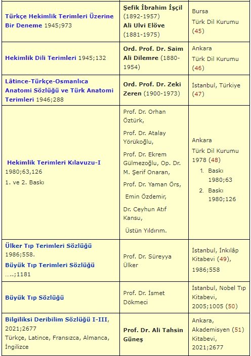 - İşçil Şİ, Elöve AÜ. Türkçe Hekimlik Terimleri Üzerine Bir Deneme. TDK, Yeni Basımevi, Bursa, 1944;973.