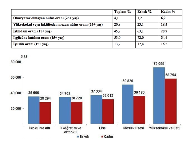 Bir süre sonra sayısal verilerden bahsetmeye başlıyor rapor; "Birleşmiş Milletler Kalkınma Programı tarafından yayınlanan 2019 İnsani Gelişme Raporuna göre İnsani Gelişme Endeksi açısından 189 ülke arasında 59'uncu sırada yer alan Türkiye, 2018 Toplumsal Cinsiyet Eşitsizliği Endeksi açısından 160 ülke arasında 69’uncudur. Dünya Ekonomik Forumu'nun 2018 Cinsiyet Uçurumu Endeksi’ne göre ise 149 ülke arasında 130. sırada bulunmaktadır." Yani Türkiye, sağlık ve eğitimdeki cinsiyet eşitsizlikleri konusunda, ekonomik güçlenme alanında ve kadınların siyasal katılım düzeylerindeki durumuna göre daha "az kötü" durumda.